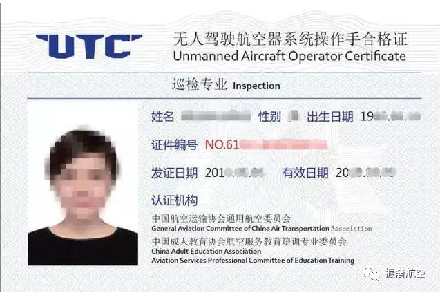 中国航空运输协会通用航空分会、中国成人教育协会航空服务教育培训专业委员会颁发《无人驾驶航空器系统操作手合格证》。2016年大疆联合中国航空运输协会通用航空分会、中国成人教育协会联合推出的培训考证体系。根据大疆官方的介绍,慧飞无人机培训中心以“专业”为特色,主要培养行业应用领域的无人机驾驶员,为他们提供专业性强、操作性强的培训课程。慧飞表示,将为考试合格的学员颁发两份证书,其中一份为《学员合格证书》,为慧飞本身颁发,仅表示学员完成了此次培训;中国航空运输协会通航分会、中国成人教育协将为通过相关考试的学员颁发《无人驾驶航空器系统操作手合格证》,认可学员在专业应用领域的资质和能力。