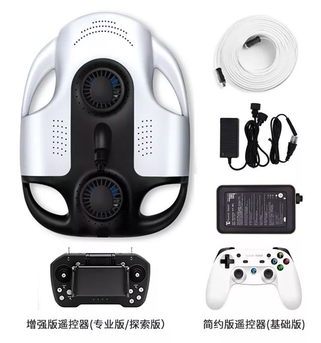 专业版:BW Space Pro专业版水下无人机*1(4K变焦摄像头|64G内存卡),增强版遥控器*1,WiFi基站*1,100米线缆,充电器*1