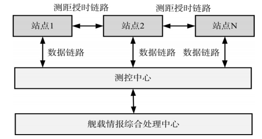 ⒉ECUSV编队协同作战将多艘ECUSV进行组网配置,协同行动将是ECUSV作战应用的一个重要发展方向。ECUSV组网使用可迅速、精确确定作战海区内电子目标的位置,为对目标实施电子干扰或精确打击提供目标情报支援。一是多艘ECUSV组网侦察。使用多艘ECUSV组网,可大大提高对电子目标辐射源的发现概率,将多ECUSV获取的多源异类和同类传感器的各类目标数据进行融合处理,形成海战场区域实时统一态势图,可用于重点目标跟踪、监视、对抗和火力打击等作战行动。通过ECUSV编队组网实现对重点作战目标的高精度定位,解决海战场目标定位难、辨不清的难题。ECUSV编队组网高精度定位系统主要包括ECUSV单站(3个以上)、测控ECUSV及舰载情报综合处理中心,如图2所示。各ECUSV站通过数据链路与测控无人船相连,利用上行链路接收舰载情报综合处理中心发送的测控指令和侦察指令,并对接收信号数据、导航数据和时标数据统一整理打包,利用宽带下行链路传送至舰载情报综合处理中心。站间存在测距授时链路,可精确实现时间同步。舰载情报综合处理中心将站点回传数据发送至综合控制计算机,实现对信号的侦察、测向、时差估计、时差频差联合估计、定位和系统标校等。舰载情报综合处理中心具有对ECUSV编队的指挥、控制和数据分析处理等功能。