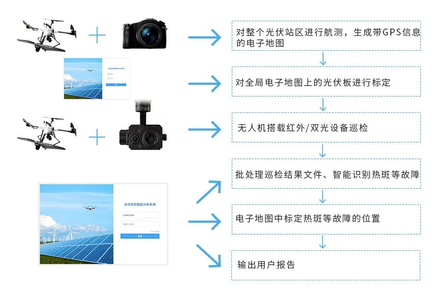 3)全自动飞行诊断,结合历史数据分析,可对光伏电站进行全面评估,还可对电站故障的出现进行有效预测;