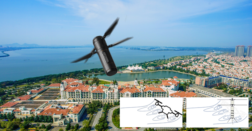 它通过一个共轴连接两个旋翼,两个旋翼向相反方向转动,扭矩得以抵消,飞行器可以稳定飞行。
