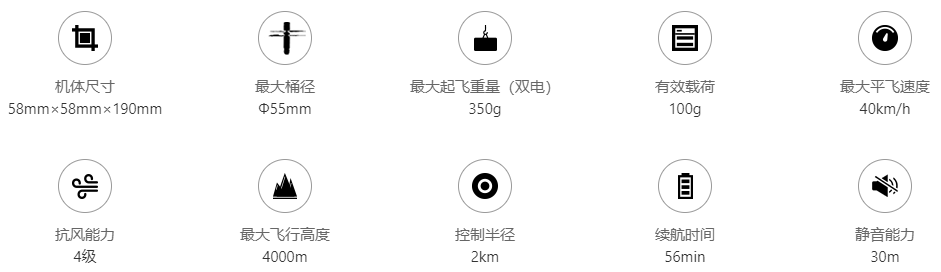 此机型采用模块化设计,便于应用和维护,具有结构简单、便携性好、抗风能力强、续航时间长、载荷大的特点。