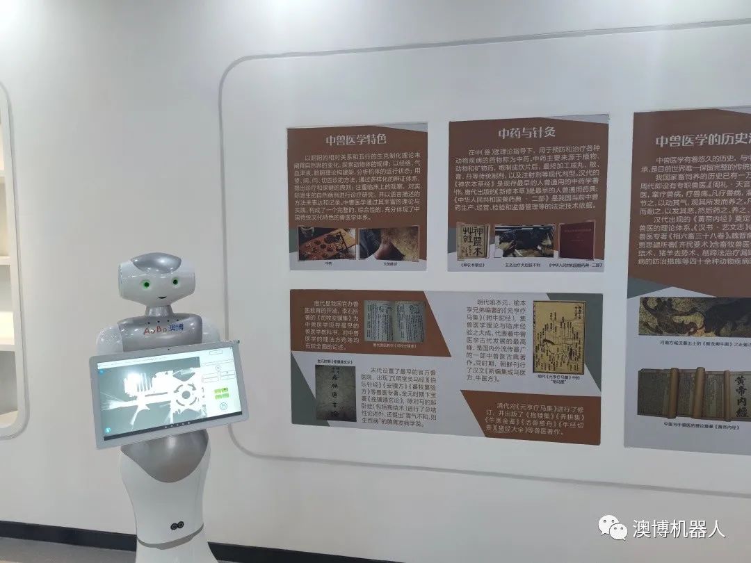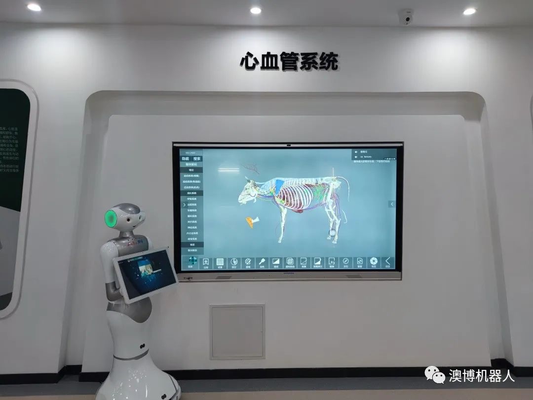 澳博迎宾机器人不仅大大提高了中国农业大学动物医学院的知识讲解效率,缓解了讲解教师的数量紧张,优化了同学的知识接受体验,而且还提高了大量同学甚至是校外学生的学习兴趣,为中国农业大学培养富有创新精神与能力的拔尖人才增添一份力量。