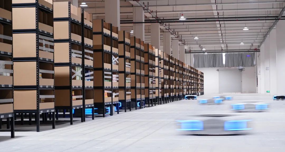 该拆零区由30台AGV、704组移动货架和11个补货站台组成,共21,120个货位格。每个补货站台的补货效率可达200订单行/小时。