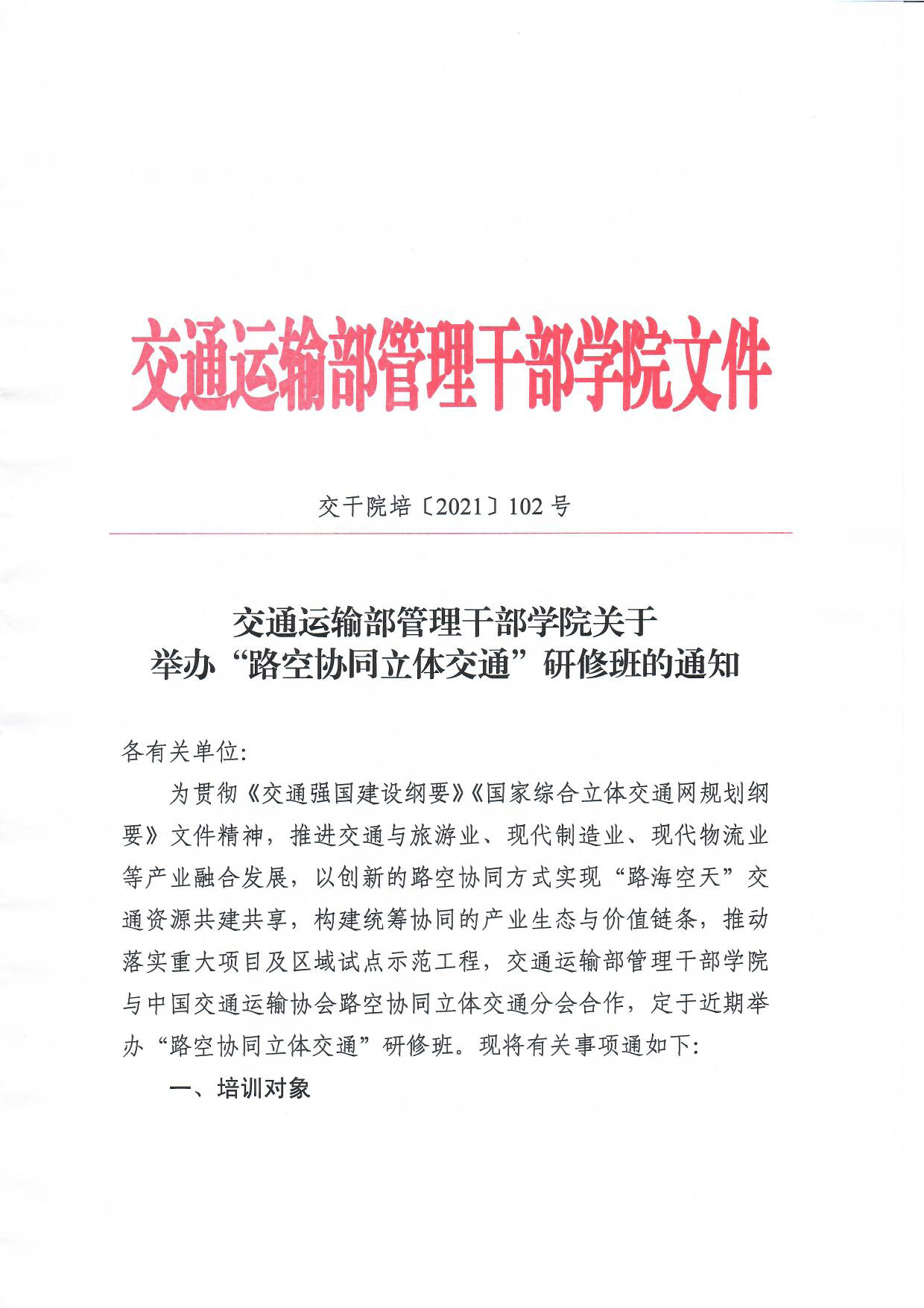 5月31日-6月4日,由交通运输部管理干部学院与中国交通运输协会路空协同立体交通分会联合举办的“路空协同立体交通”研修班即将在北京正式开讲!