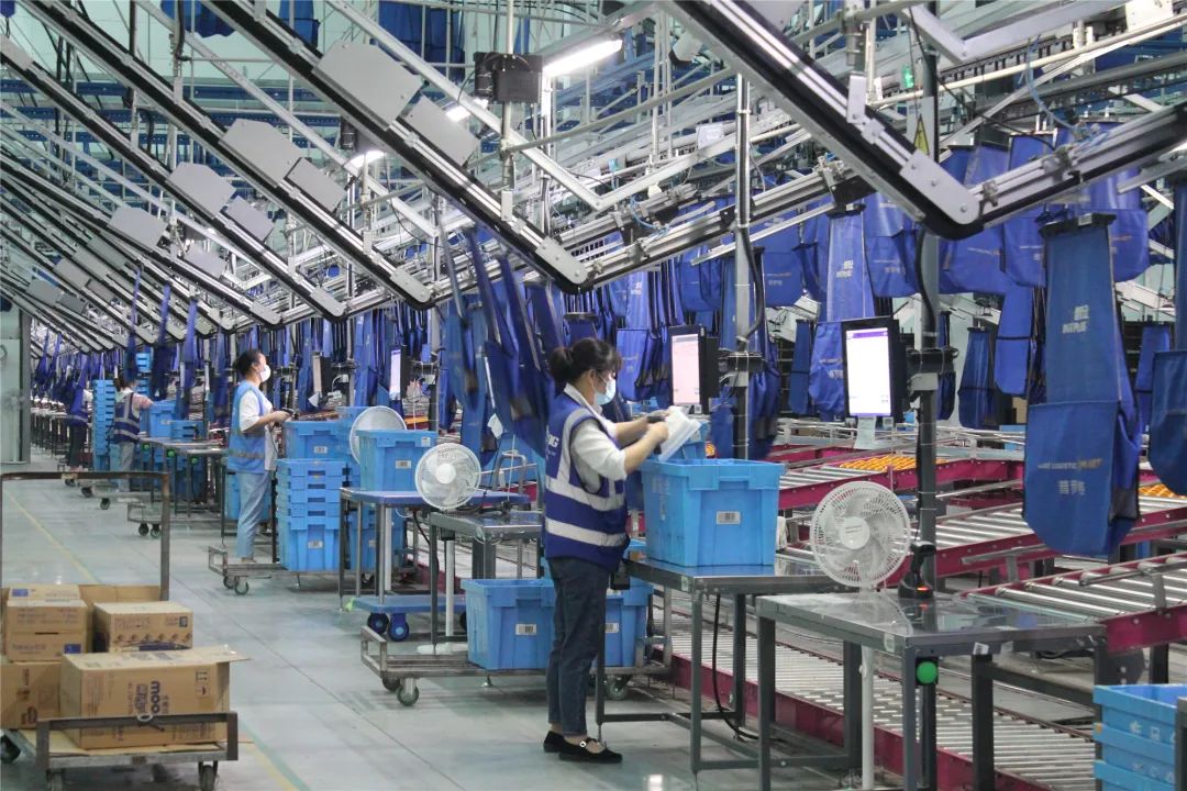 唯品会华中运营中心悬挂链项目占地近一万平方米,采用JIT模式进行整体规划布局,融合了输送线系统、AGV系统和悬挂链系统等,由普罗格自主研发的EIS系统进行统一调度,最大限度提升全流程的自动化水平。该项目创新运用了小件电商物流自动化柔性解决方案——悬挂链系统,也是国内同期单体建设面积最大、技术含量最高的悬挂链项目之一。