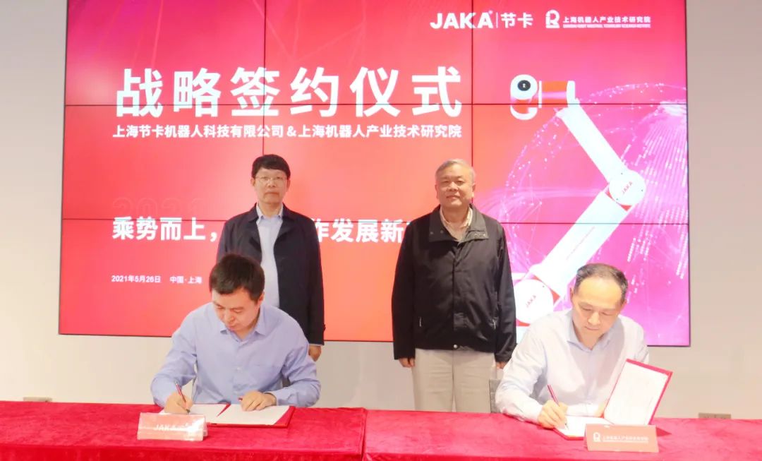 签约仪式在朱向阳教授(后左)、戴柳会长(后右)的见证下举行根据协议,双方将依托各自优势展开战略合作,节卡机器人将充分发挥自身在协作机器人研发、应用等技术优势,研究院发挥自身在机器人研发、检测和标准化等优势,就面向未来协作机器人研发、市场、应用等内容展开成果转化研究。值得一提的是,研究院董事长郑军奇应邀被聘为节卡机器人企业发展战略顾问,致力于为节卡机器人发展提供更多指导意见。