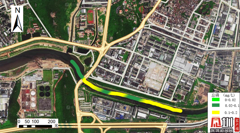针对重点河流,宝安管理局开展“雨前-雨中-雨后”巡查,采用无人船搭载水质分析仪进行河道巡航,获取河道水质数据,形成水质因子分布热力图,找出可能的水质异常区域,为进一步排查提供依据。