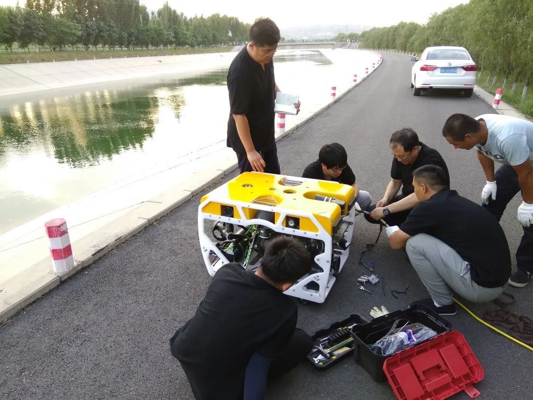 2017至今,深之蓝为南水北调研发了3台水下机器人专用设备,并投入沿线渠道使用。分别为通用型、长距离、高抗流水下机器人系统,这些设备实现了高清水下观察、声学扫测、三维重构,突破了水下抗流航行、多维多手段观测、精细测量、高精度导航、集成式保障等关键技术,解决了明渠、长隧洞、倒虹吸、箱涵、暗渠等多种工况下的带水检测问题,用于定期对工程安全巡检,对工程缺陷进行应急排查、对水下工程的修复进行复检和验证等,有利保障了南水北调工程的正常运行。深之蓝技术人员的足迹已经遍及千里长渠,其中南水北调中线穿黄工程应用的长隧洞水下机器人更是刷新了记录,凝聚了深之蓝人的智慧与心血。