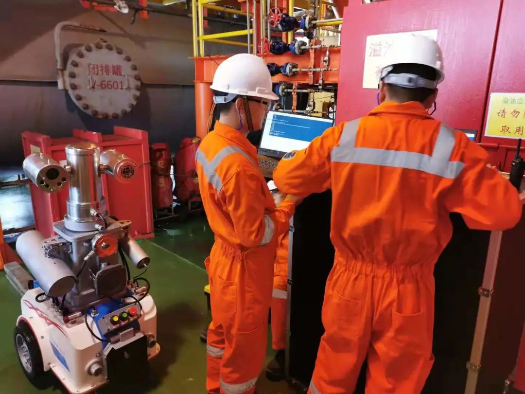 “智巡1号” 于2020年12月份正式在海上平台进行测试。团队人员根据测试过程中出现的诸如通信网络不稳定、部分元器件工作不稳定等问题持续优化完善。