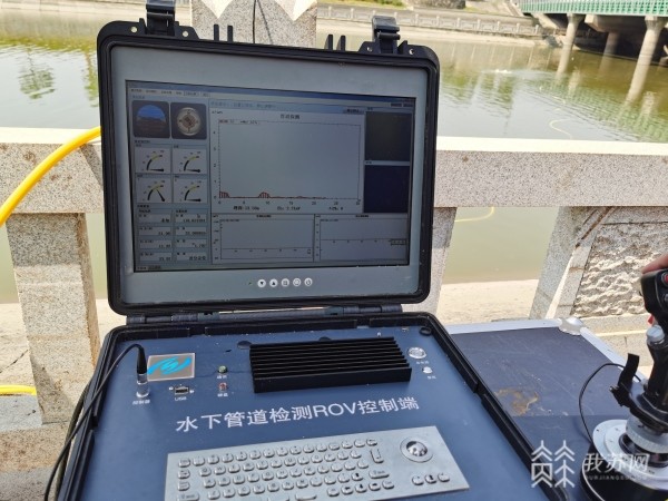 夏季汛期即将到来,在江北新区七里河的水下城市燃气管道检验现场,江苏省特检院直属分院的检验人员正在使用水下管道检测ROV控制端,又称“水下机器人”,通过转动手柄,发送检测信号,根据分析设备显示屏上的数据,可以对深埋在水下十几米的燃气管道进行定位测量,并对管道外防腐与保护状况等方面进行检测和评价。