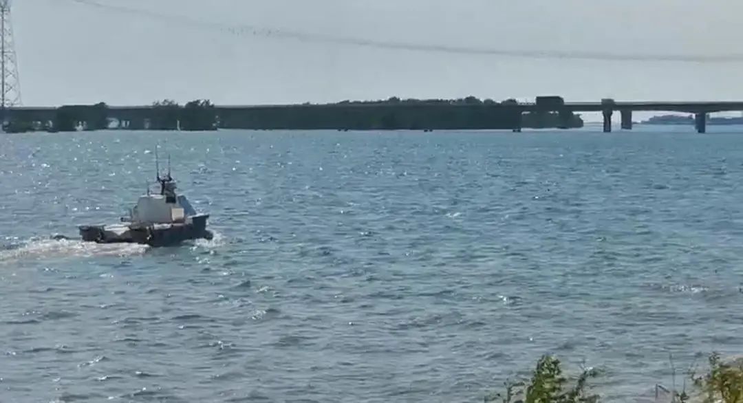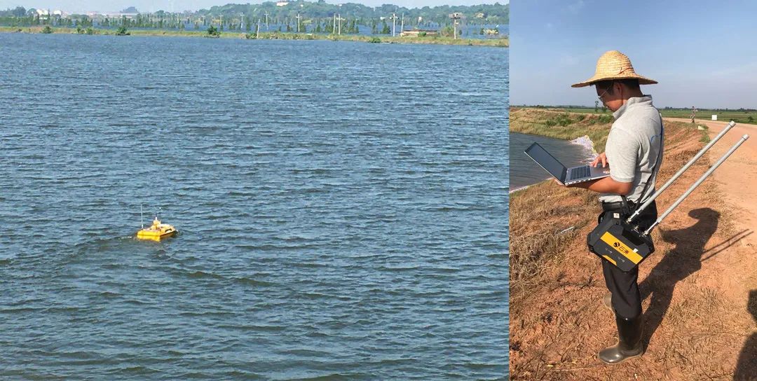 ▲无人船搭载多波束测深系统进行堤岸风险点排查
