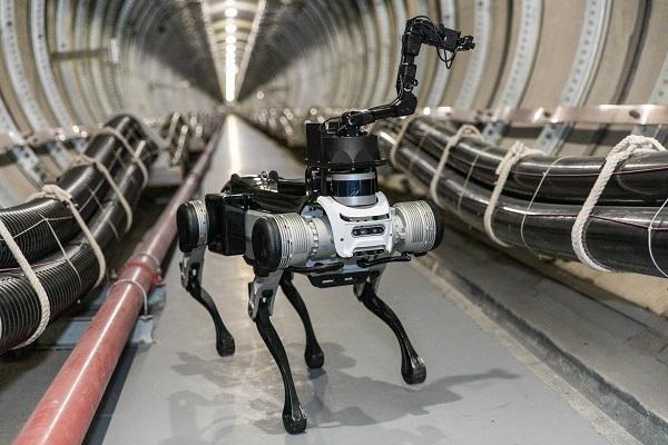 咚——咚——咚——咚,近日,“黑背”一进500千伏虹杨电缆隧道,就迈开四脚向隧道纵深走去,有时抬头挺胸大步流星,有时不紧不慢,东瞧瞧西望望,有时伸长脖子,驻足凝视……“当前位置500千伏虹杨隧道4号至5号竖井区间,智能巡检四足机器人姿态稳定,电量充足,机械臂及搭载设备等情况正常,速度0.2米/秒,已升起机械臂,并切换至接头区域巡视模式……”令后台电力作业人员更为放心的是,“黑背”遇到防火门槛,就轻松“跨栏”,走到台阶前,能拾级而上。