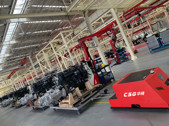 商用车生产因其不同于乘用车生产的独特特点,无法照搬乘用车领域的物流解决方案,其大负载,低节拍,高柔性,大尺寸,多轴距的特点使其物流供应商要具备更加全面的物流经验与生产工艺理解。CSG华晓17年来在汽车行业服务了超过90%的汽车品牌,1000余个落地项目案例为客户的风险规避与工艺理解提供了独特的咨询价值。做为CSG集团27家子公司之一,在汽车行业打通了软件系统,机械手,助力机械臂,非标输送,AGV系统,视觉系统等生产自动化的多项技术。依托立体库、AGV、PTL拣选等智能设备,实现从供应商来货管理到产线供料,车辆组装的全流程畅通,全流程信息可追溯,让工厂运行更优化、更高效。而在商用车智能制造领域内,中国工程机械制造龙头企业与CSG华晓进行了深度战略合作,CSG华晓为其量身定制的300多台AGV,形成了有序的耦合工作机制,极大地提升了重卡生产的智能制造水平,是国内首条实现重卡组装现代或柔性产线,实现了了组装,零件,成品三流合一,充分考虑了安全,效率,数据,维护,柔性,空间的多维度平衡,缩短了新工厂投产时间,节约了投入成本,解决了按需部署和灵活增减产的痛点问题。用实际的解决方案而不单单是产品给客户提供了一揽子的省心服务,实现了TCO数据全面降低。