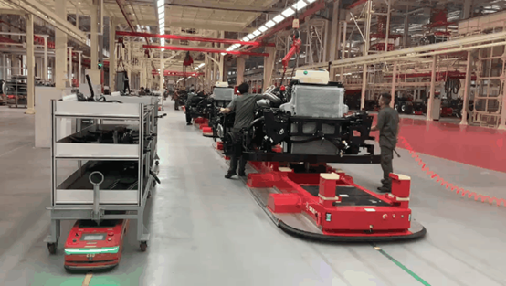 物流及仓储管理方面:小件立体库存储,大件货架存储,100%的FIFO管理,做到了智能分类,实时统计,提前预警,优化库存。在ERP和WMS系统管理下,订单下达精确,物料匹配管理,部件来源追溯,供应商物流实时监控,真正意义上做到了可管理的”warehouse on the wheel”。装配工艺方面:PTL系统指导工人傻瓜式拣选,减少了新员工培训时间,降低了拣选错误率;数百台AGV加上全自动上下线机构实现零部件的准确匹配,将订单化生产做到无感知的自动过程;组装工艺方面,颠覆性的采用柔性AGV装配线取代传统地拖链主线,自动对接机器人、拧紧机、翻转机等自动化设备和生产系统,实时增加或减少装配运载车具,实现单车异常不影响主线速度,部品异常即时整改不需至尾部组装完成。
