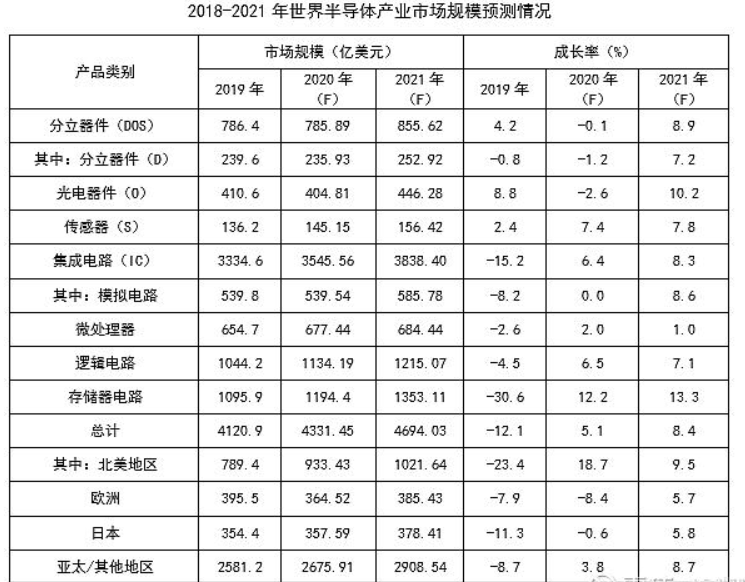 根据WSTS 预测,2021年世界半导体产业(市场)将增长8.4%,达到4694.03亿美元,并超过2018年的4687.9亿美元,创出历史新高纪录。