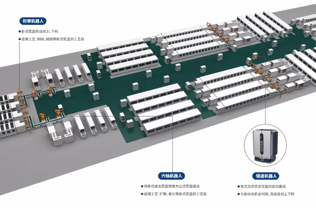国自在该项目中应用的Slam导航配合侧向视觉二次定位功能和上装自适应功能,不仅适用于光伏电池片生产场景,亦可广泛应用于3C、面板和半导体等高精尖行业,实现机器人与自动化产线的高精度、自动化无缝对接。
