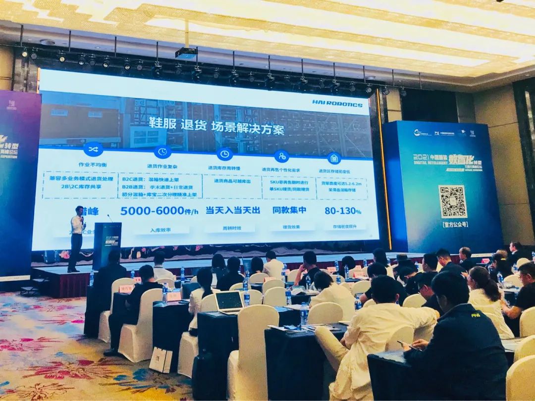 作为产业链的重要一环,移动机器人厂商代表海柔创新行业方案技术总监曹董锋,在大会现场做了题为“服装行业自动化项目解决方案分享”的主旨演讲,分享海柔创新在快消时尚、运动休闲、跨境电商、童装等多个领域实现降本增效的自动化解决方案,让现场嘉宾感受到物流机器人给鞋服行业仓储物流带来的能效革命。