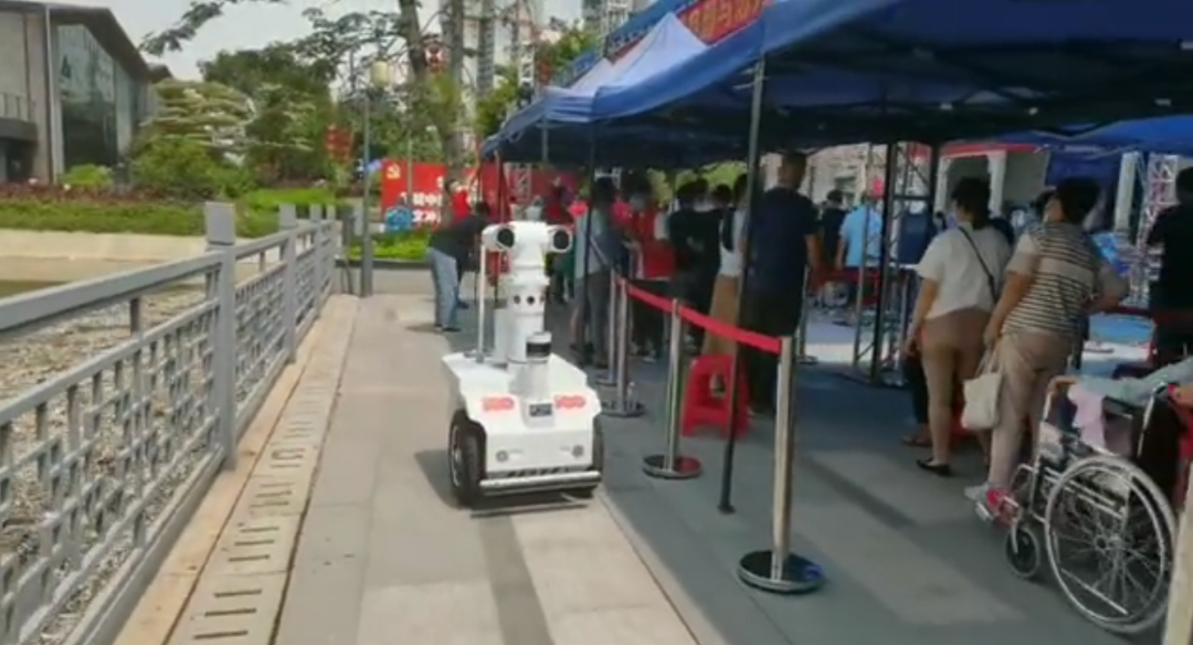 高新兴科技集团党委于2019年3月与黄埔区政府办第一党支部结为共建党组织。在黄埔区政府办第一党支部带领下,高新兴科技集团党员志愿者迅速投入服务工作,协助一线医护人员组织现场秩序、配合疫情防控相关工作。同时,高新兴还派出5G测温巡逻机器人进行实时体温检测、识别是否戴口罩,并以语音播报等形式对社区居民进行正确引导,通过科技“抗疫”展现黄埔企业担当。