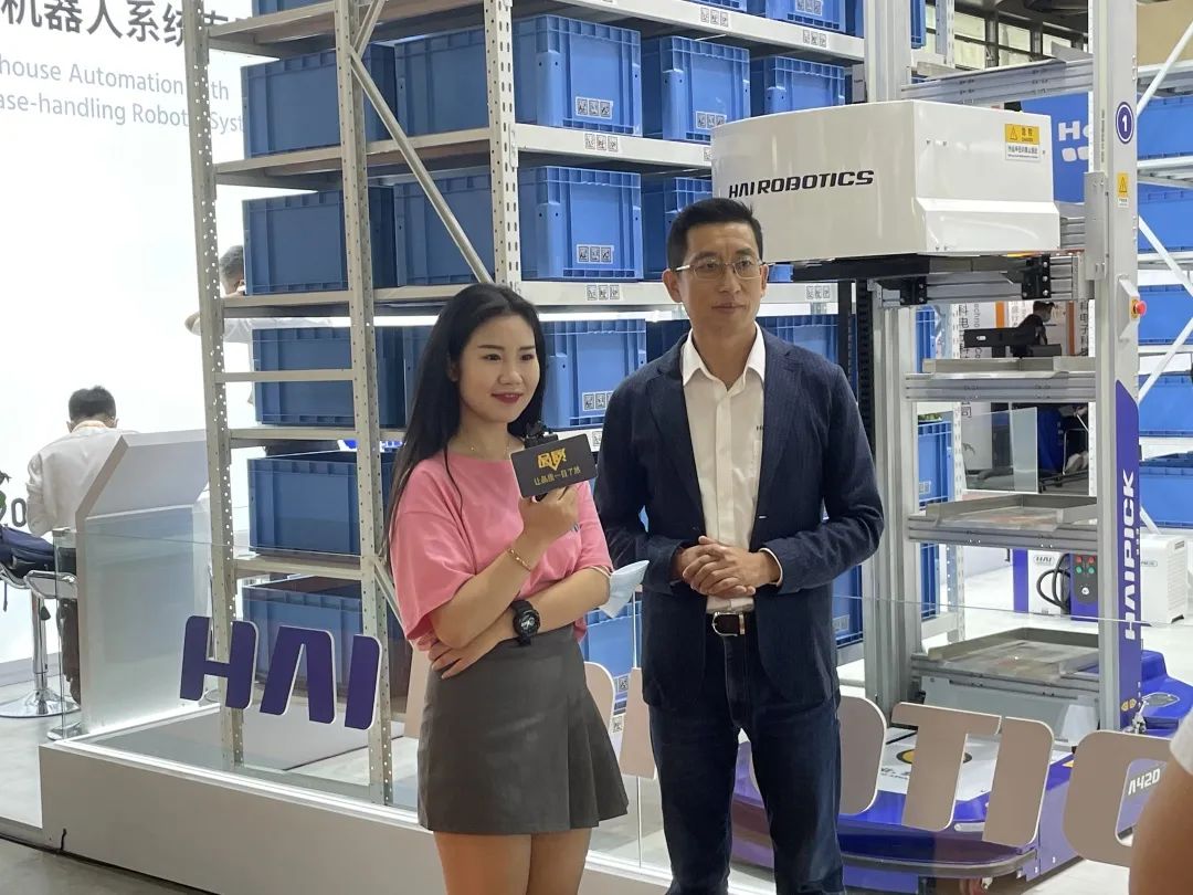 HAIPICK A42D 双深位料箱机器人和HAIPICK A42N 纸箱拣选机器人不仅在前来参观的各企业单位物流负责人中吸睛无数,还吸引了多家媒体的关注。