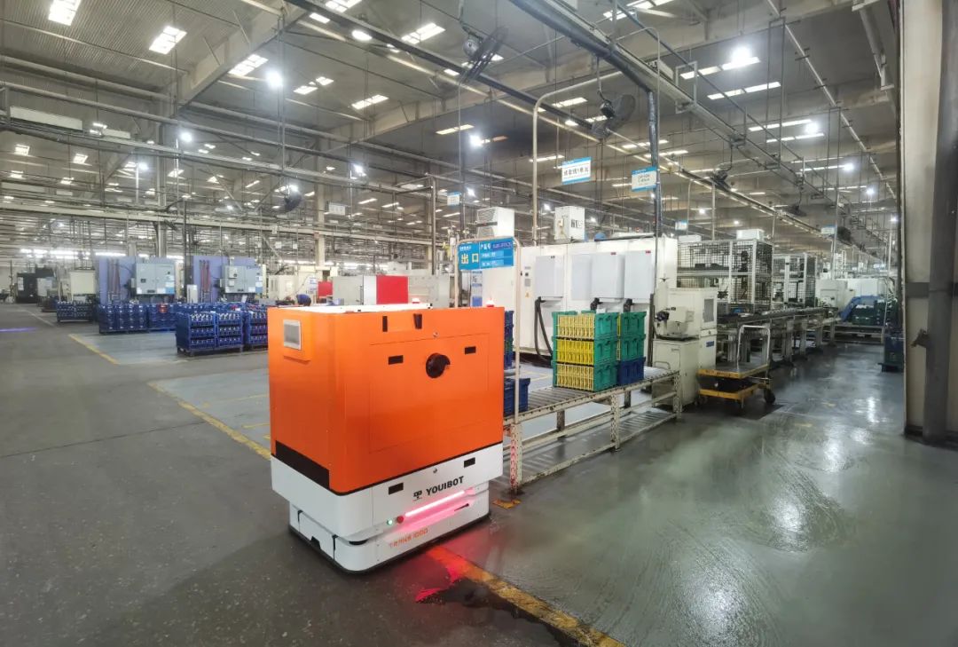该工厂内应用优艾智合6台定制机器人,配合YOUI TMS物流管控系统和YOUIFleet调度系统,实现零件出入库和产线间搬运,与自动产线对接的智能化管理。