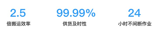 大规模智能转运替代人力搬运,实现产线缓存区至仓库之间的运输、仓库至发货口之间的运输、夜间自动理库。