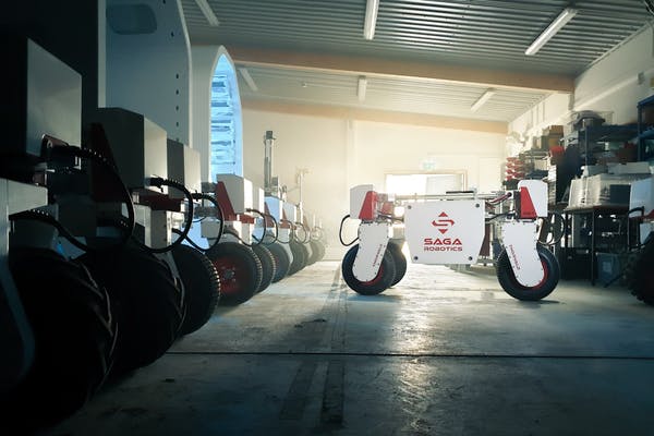 我们是名为Robot Highways的项目的一部分,该项目目前正在展示 Saga Robotics 在英格兰东南部水果农场制造的自主机器人的多种用途。机器人现在正在田间和温室中治疗植物病害,并将在整个项目过程中绘制地形图、采摘、包装并为工人提供后勤支持。这是通过将不同的工具连接到一个自主的“base robot”来实现的。