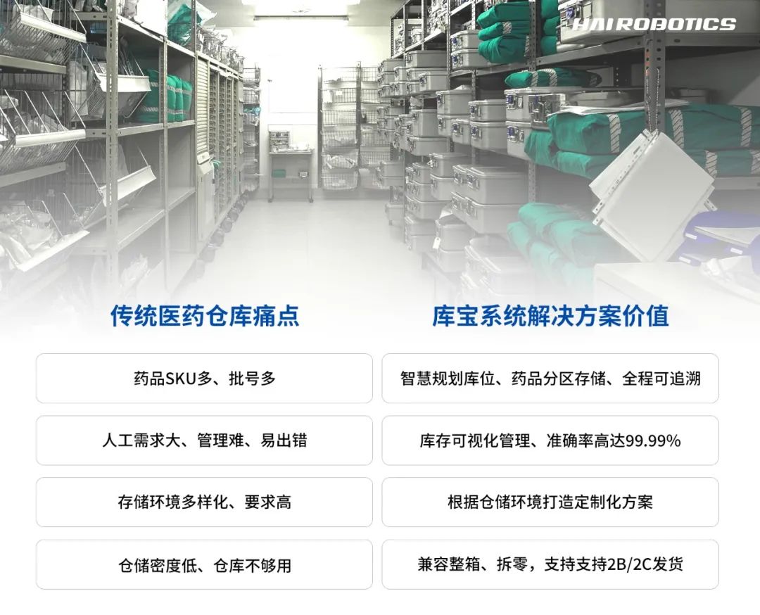 从医药生产、医药流通再到终端零售,目前海柔创新库宝系统已经完成了全流程布局,为客户提供高效准确的货到人拣选服务,满足医药流通各项管理要求。