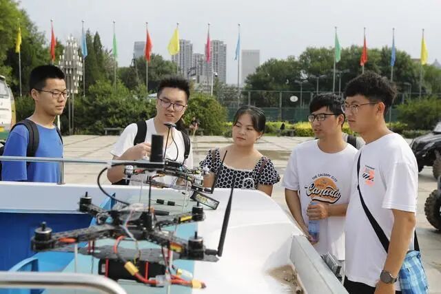 7月6日,天津大学2021届毕业典礼开始前,一项特殊的毕业设计进行了炫酷的现场展示。当天,天津大学首届新工科毕业设计项目“天津大学智慧校园海陆空智能无人系统安全巡查平台”展示活动在卫津路校区体育场前广场举办。由无人机、无人船、无人车组成的“海陆空协同无人探测与追踪平台”,以高度智能化、无人化、便捷化、高效化的协同系统,模拟完成了校园安全巡检工作。这也是天津大学新工科建设实施以来,多学科交叉“项目制”协作教学成果的一次创新性实践和探索,是天津大学2021届毕业生送给母校的一份“硬核”礼物。