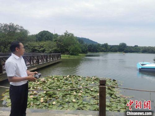 余道洋正在进行“水面保洁船”测试工作。 储玮玮 摄