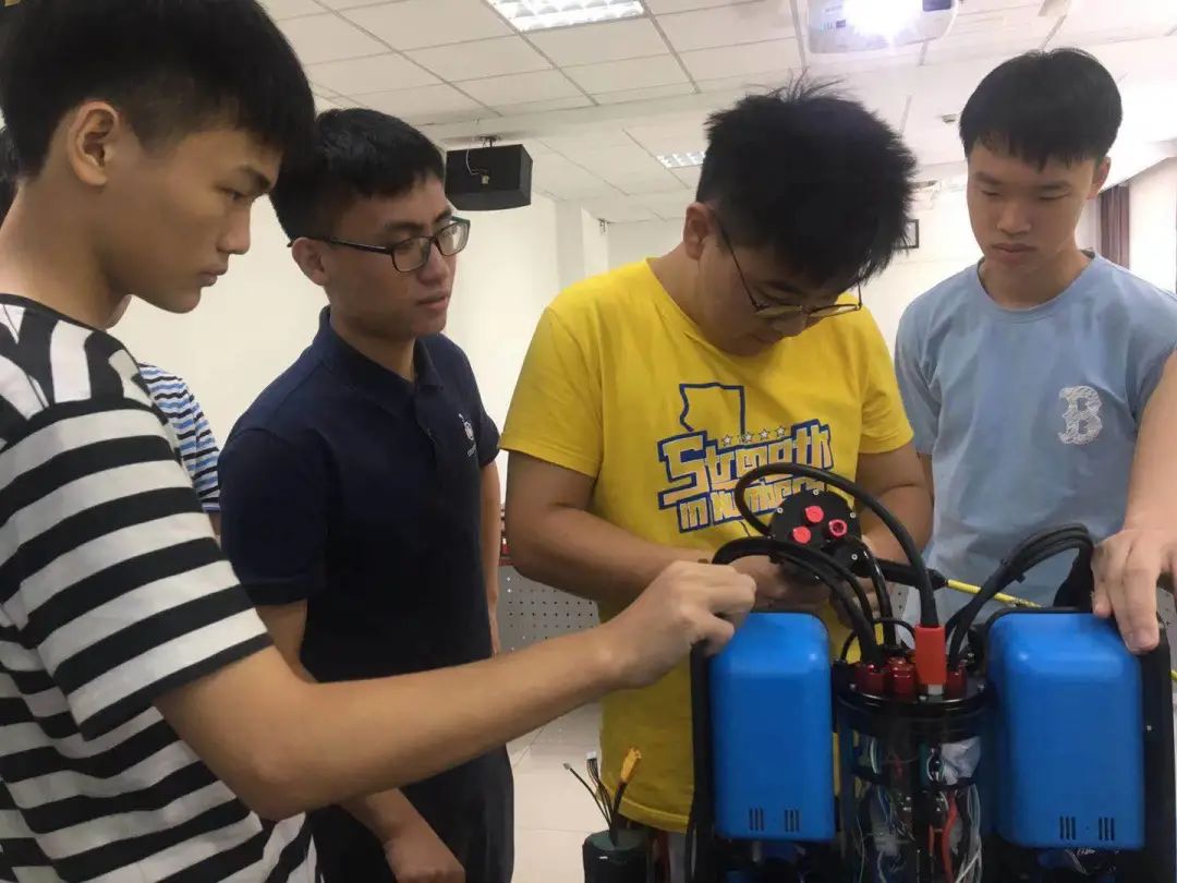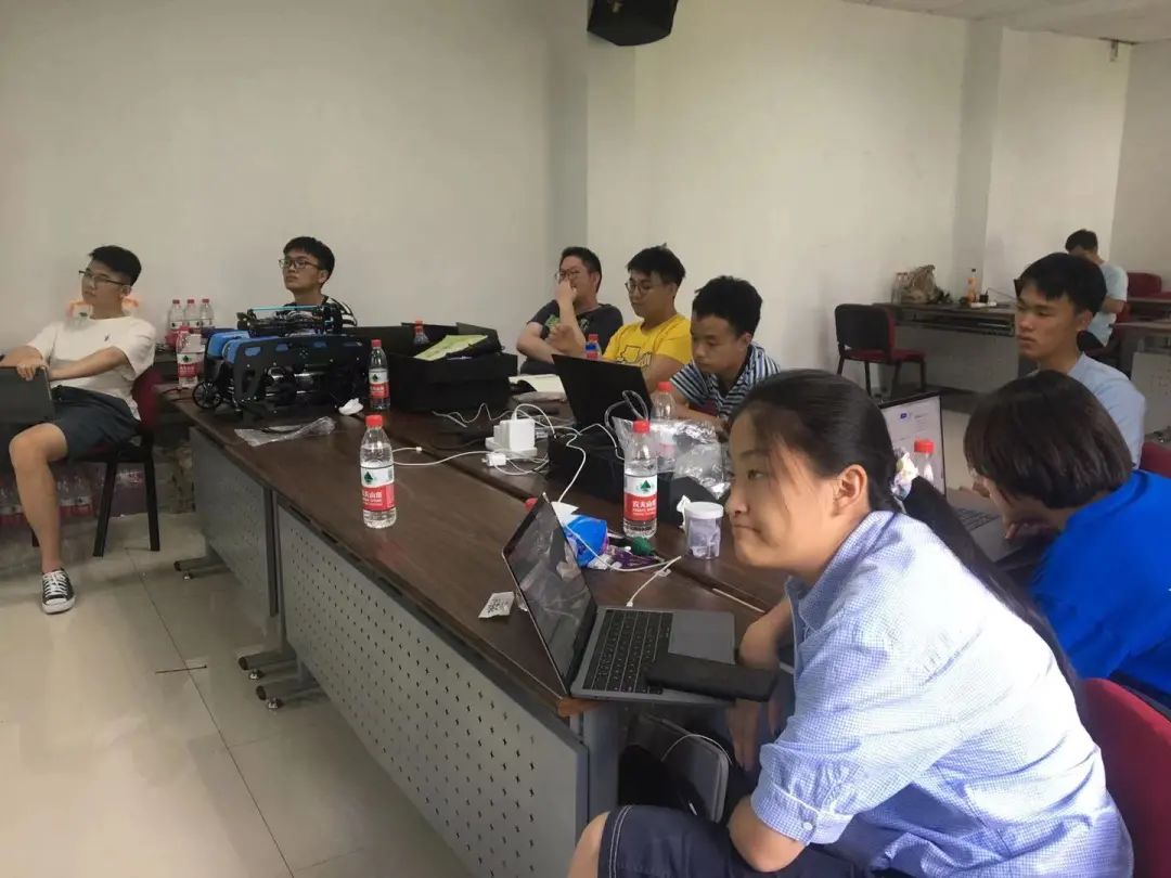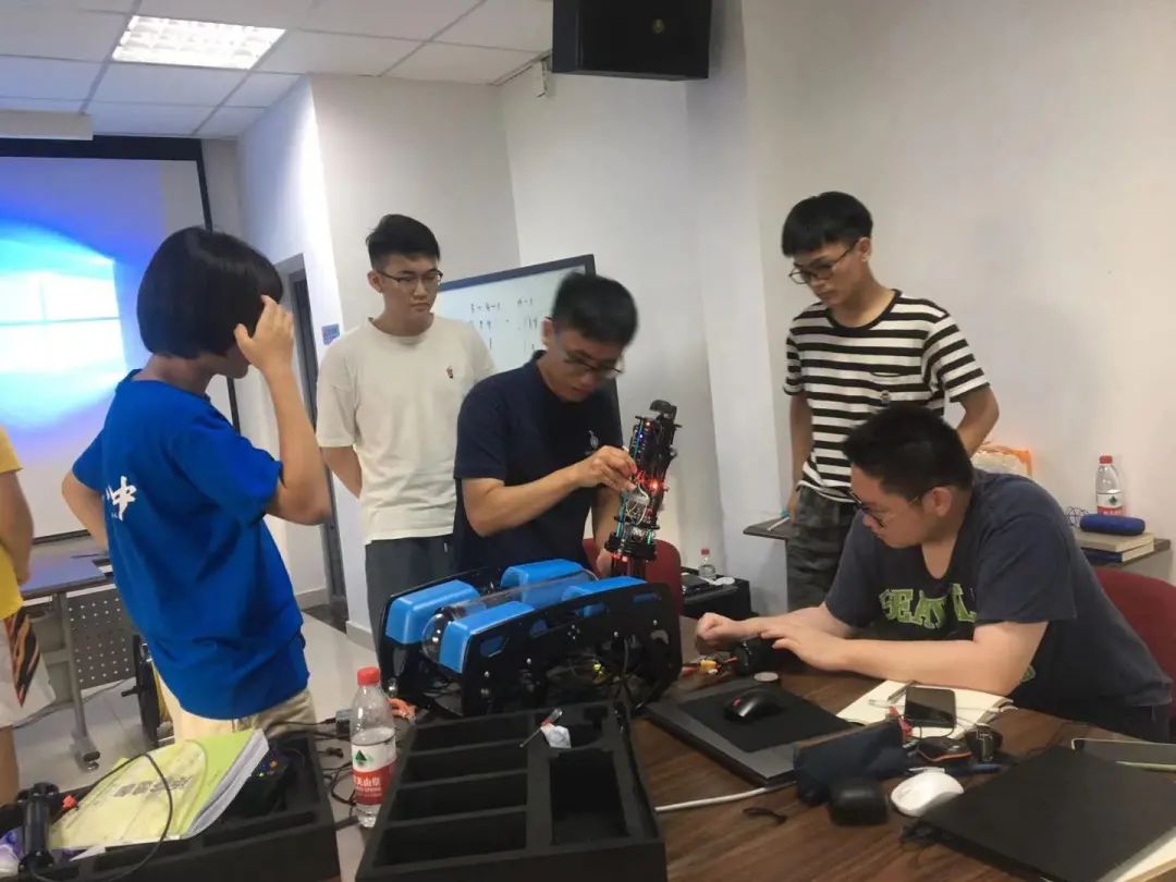 互相帮助、共同探讨,营员们的团结协作也成了营地一道靓丽的风景线。测试之余,营员们还会积极对机器人设备进行维护、检修、升级,随处可见营员们低头工作的场景。