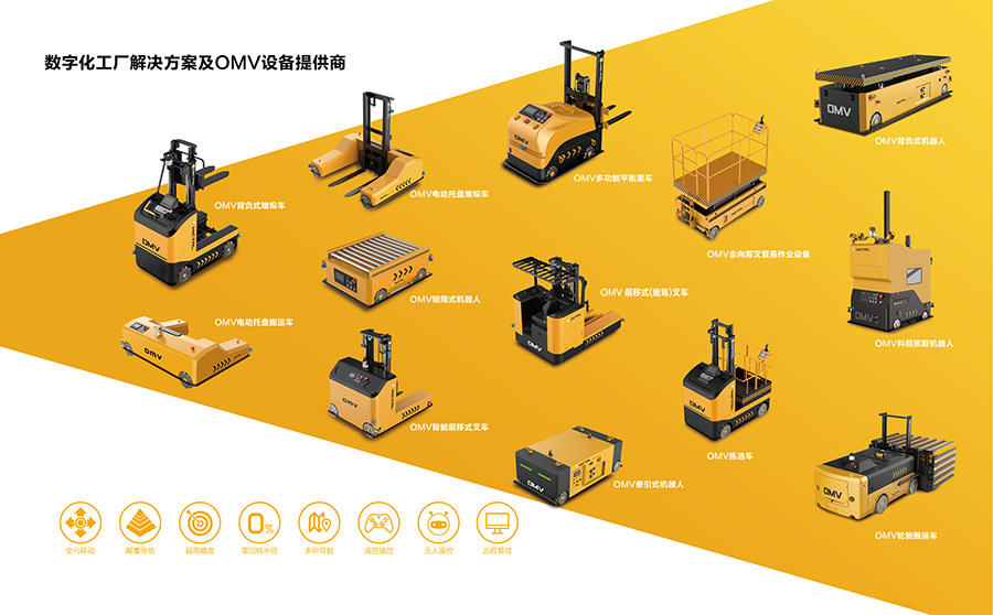 从2017年初,上海汇聚自动化科技有限公司开始进军智能物流自动化行业,开发出了物流行业中的OMV智能无人化叉车。其采用了麦克拉姆轮技术与自动导航技术等两大核心技术,可在二维平面无死角任意漂移,具有四轮独立驱动、精密微动、精准定位等特点,可以在无需装配车轮转向装置下实现车体的直行、横行、斜行、自转、组合漂移等全方位移动。这种灵活的方式在实际应用中,完美解决了传统设备在狭小空间内无法自由运转的问题,可以为仓储物流搬运环节大大节约时间与提升效率和节约仓储空间。