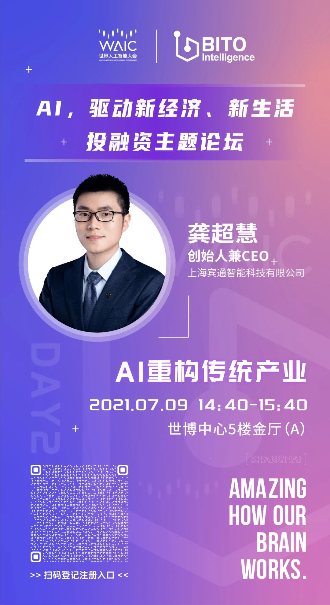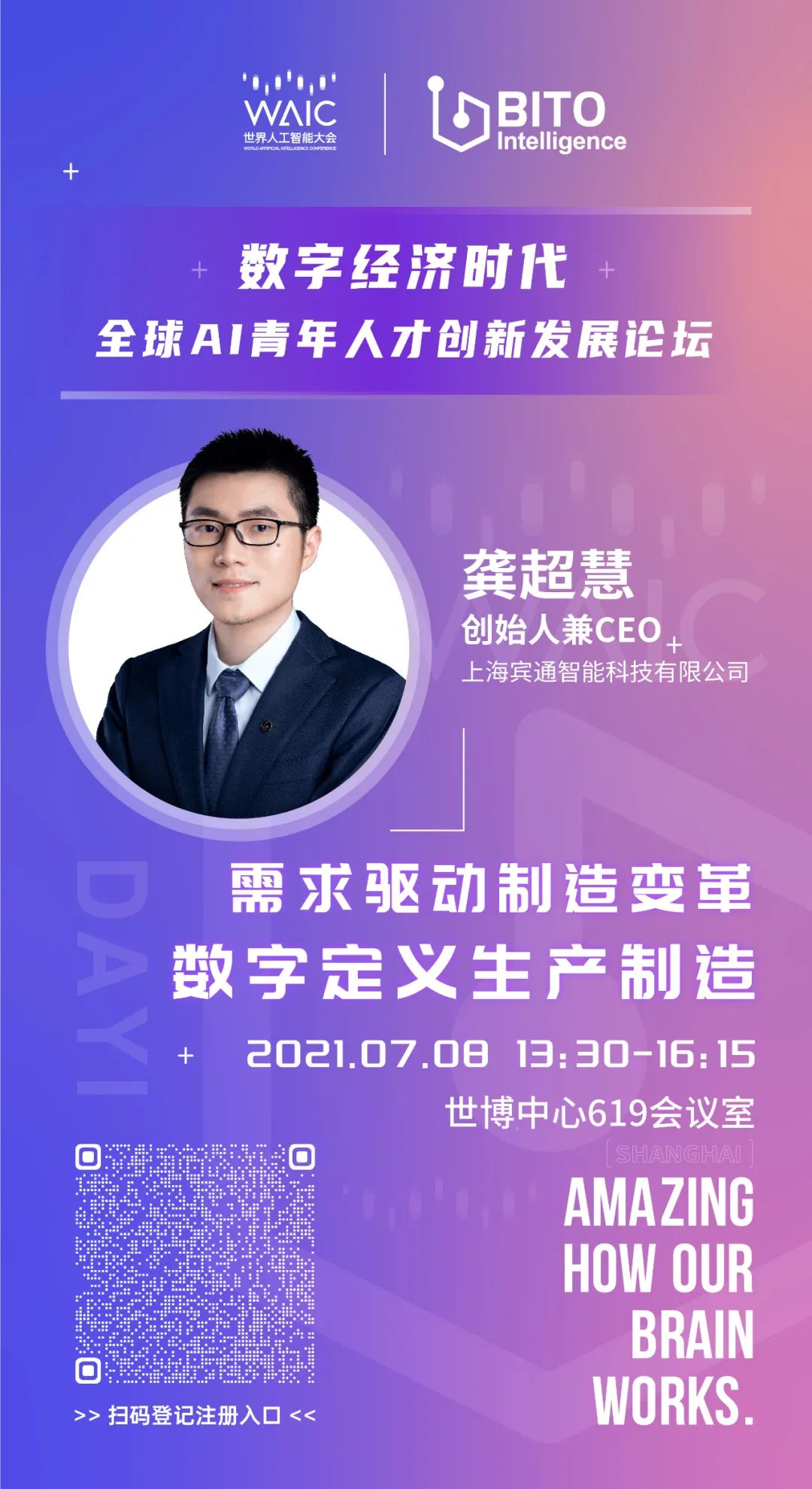 AI青年科学家联盟·梧桐会联合氪信科技,在上海交通大学、将门创投、机器之心的支持下举办2021WAIC《数字经济时代全球AI青年人才创新发展》特色主题论坛,邀请前沿数字化产业成果贡献者参与主旨演讲,宾通智能CEO龚超慧博士受邀与大家一起分享交流AI青年的那些关于选择、坚持与未来愿景的“冒险之梦”。