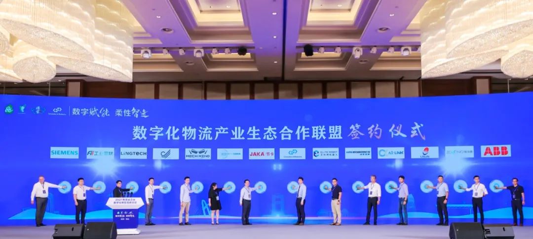 数字化物流产业生态合作联盟签约仪式上,斯坦德、ABB中国、西门子中国、梅卡曼德、工业富联、长川科技、海柔创新、牧星科技、艾利特、节卡、艾灵网络(AI-LINK)、阳程科技、领志科技、智佳能等众多行业内上下游企业达成合作,未来将以产品技术为原点、上下游应用为锚,联接供需双方,以开放、务实的态度,践行数字化物流。数字经济技术咨询服务项目也成功签约,构建以“云+数+咨询服务”为架构的全新咨询服务平台,赋能数字经济健康发展。