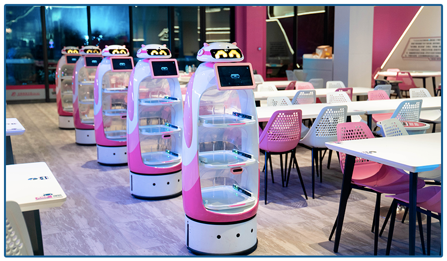 基于云端开发,客户可以利用小程序扫码点餐,智能下单。基于Athena底盘开发的送餐机器人机器人接受到“配送”请求后,利用桌号进行定位,自主移动、避障、规划路线,把餐品顺利送到订餐人手中。同时配合语音交互,互动性更高。