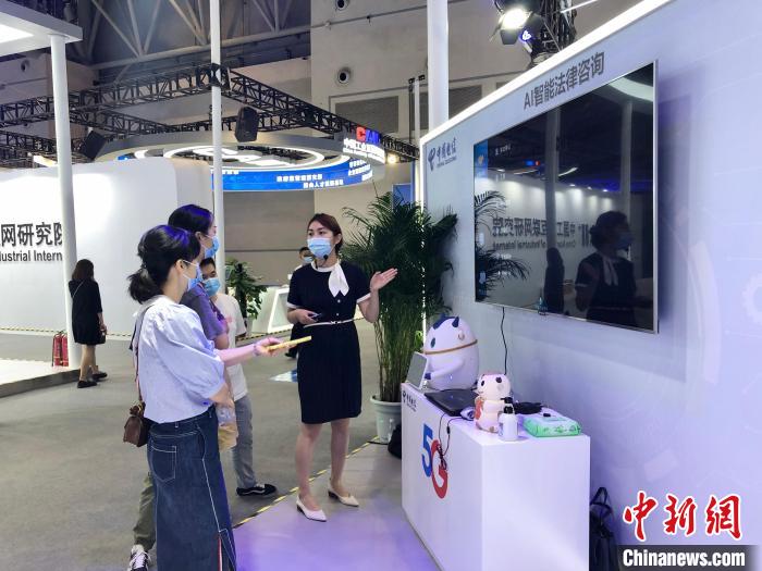图为人工智能法律机器人“大牛”系列吸引市民围观。 钟旖 摄