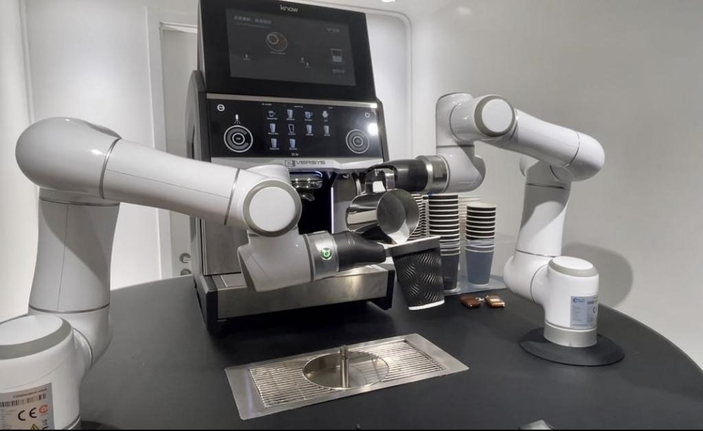张江机器人谷未来体验馆内机器人正制作咖啡。新华网严曦梦 摄