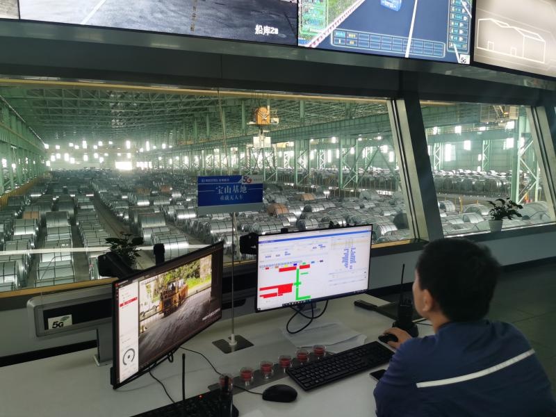 把如此“吃功夫”的重活交给AGV,在于5G高宽带、低时延的视频回传及数据处理,令宝钢员工坐镇于数百米外指挥室,运筹帷幄——AGV内加载5G路由器、三维激光雷达,车行路面上隐藏着引导磁钉,5G技术融合无人驾驶视觉感应、超声波碰撞感应系统,海量数据在信息与通信“管道”中高速畅通流转,最终成就了AGV优于人类的高精度、小误差实战表现。