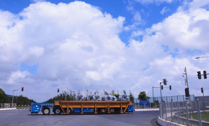 这群运输特种兵,身长16米,没有驾驶室,因为根本无需人来操作。在仓库,它们适时前进后退、调整身姿,精准托举钢卷,集齐后再前往成品码头。第一次,黑夜不再是运输壁垒,仓库码头24小时不间断运营成为可能。