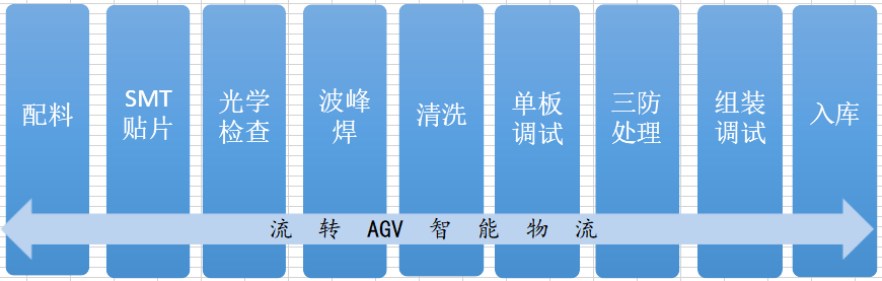 上下货站点应充分考虑流水线的布局,原则上应与流水线产品的流转流程保持一致。因此,流水线的布局应充分考虑物流安全通道,在产线布局时提前做好规划,预留相应的出入口和物流通道。另外,由于上下货需要AGV小车做相应任务,对于节拍相对固定的工作站点而言,可以通过时间间隔设置来作为触发下一个动作或任务的条件,实现难度相对较小。然而,铁路行业产品比较多,人工介入也较多,各工作站点的节拍并不统一,每种产品在各工位的驻留时间不一致。在这种场景下,AGV小车需要增加额外开关量来触发下一任务。图2以上海铁路通信有限公司内部工艺流程为例设置站点,如果为全自动化车间,各工位节拍固定,则站点布置建议采用时间触发;如为半自动化车间,上下料需要人工干预,建议采用开关量触发任务的设计方式,这种设计较为通用。