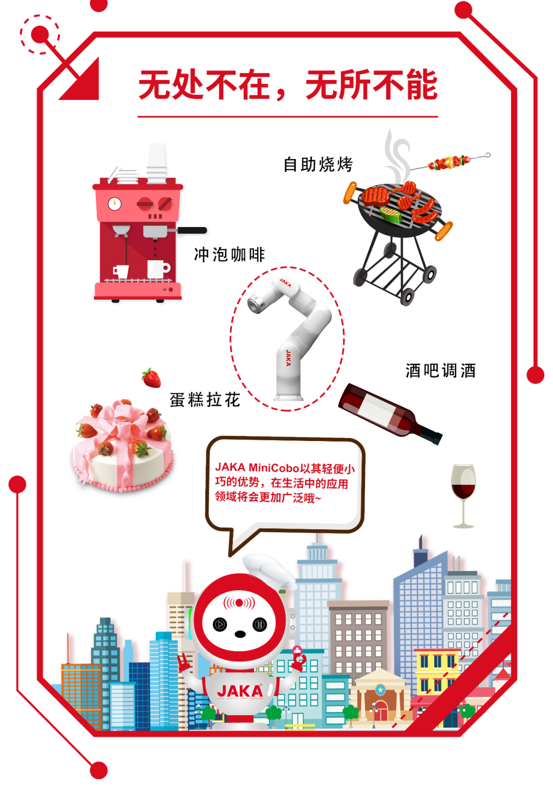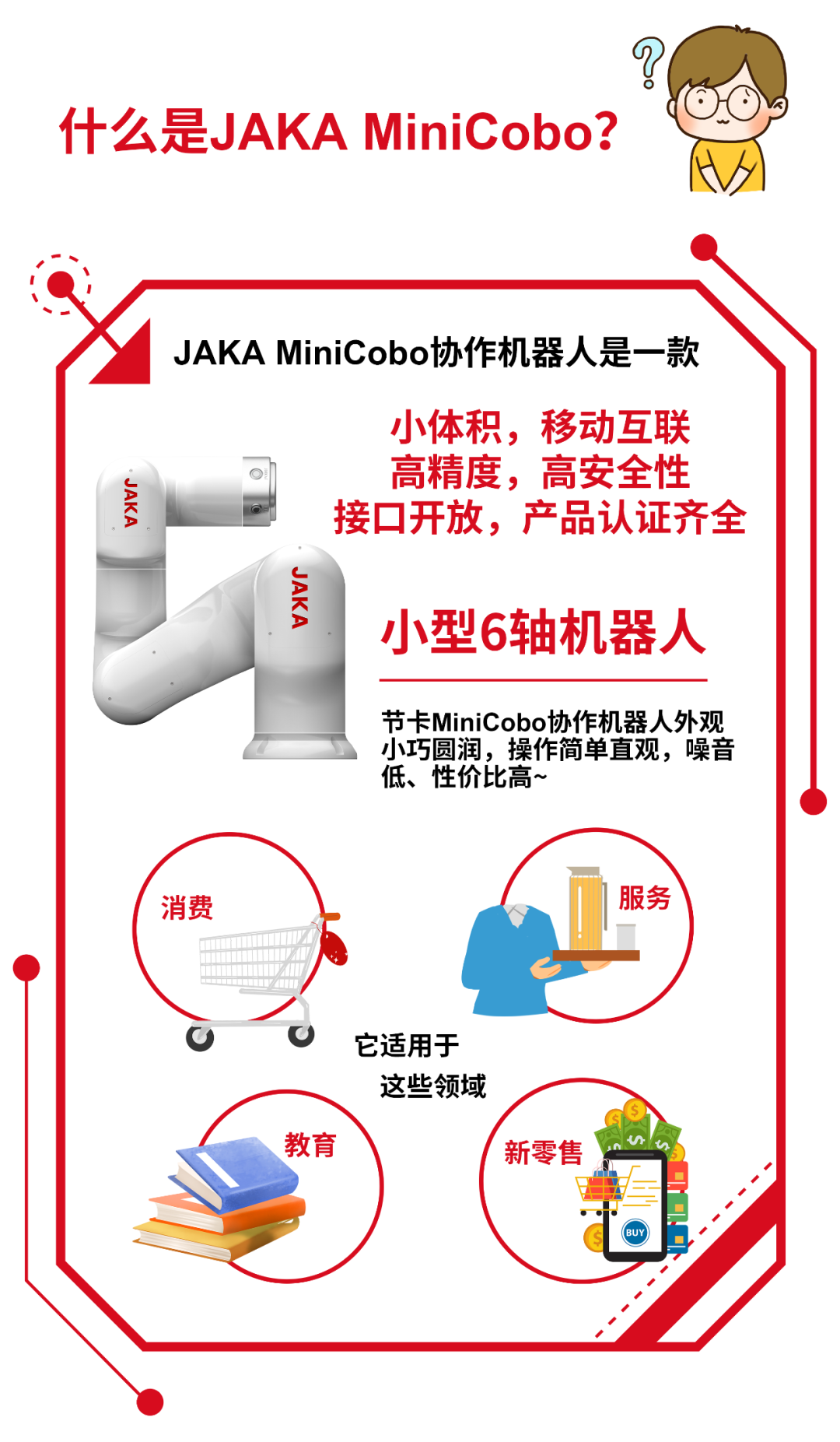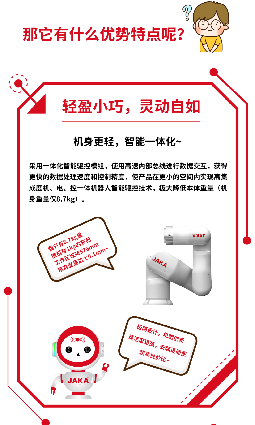 JAKA节卡机器人创立于2014年,音译自英文名“JAKA”(Just Always Keep Amazing)永葆卓越之意,是一家聚焦于新一代协作机器人本体与智慧工厂创新研发的高新技术企业,技术方面,在上海紫竹科技园设有研发中心,在江苏常州设有生产基地,在深圳设有分公司。