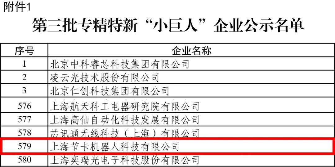 近日,国家工业和信息化部发布第三批专精特新“小巨人”企业名单,节卡机器人荣列其中,获国家级专精特新“小巨人”企业荣誉称号。
