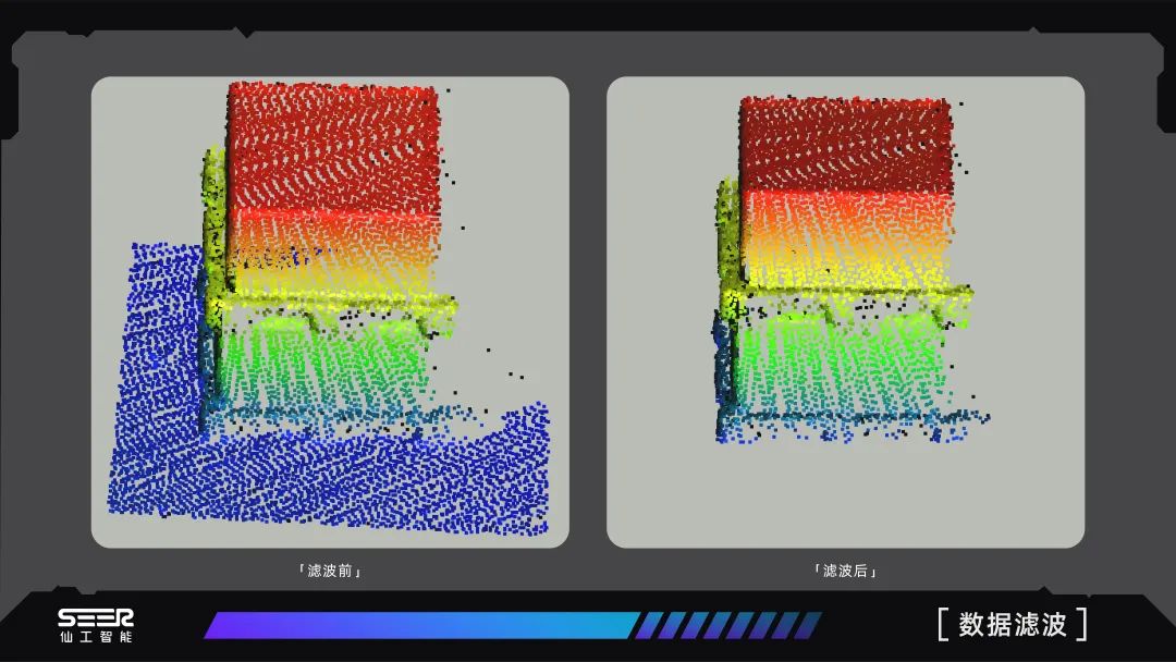 数据滤波过程相当于对采集到的3D信息进行一次初略的清洗,去除与后续分析对象无关的信息,可以方便我们更加聚焦在需要处理的对象上。