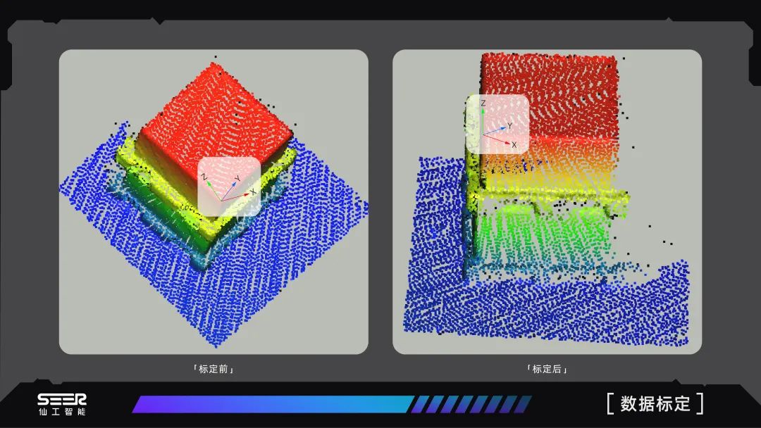 数据标定主要工作是建立3D 传感器与真实场景之间的联系,将3D传感器看到的事物与真实场景中存在的事物建立一一对应关系。完成数据标定过程,我们就可以将3D视觉数据分析出来的结果反馈到到真实场景中。