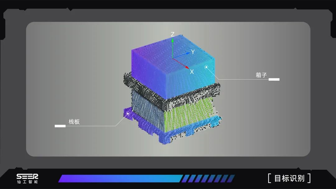 目标识别就是确定目标物体在场景中的位置和姿态,利用目标识别算法准确的识别场景中的货物所在位置为后续数据评估提供基础。识别出货物的位置与姿态也可以用来引导机器人对货物进行叉取转运。