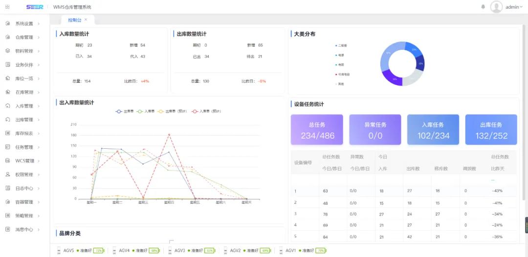 2、机器人系统接入仓库 WMS 系统,持对接多种物流设备,记录仓库物料信息、实现即时柔性出入库,打通库房、线边,实现全程自动化,避免了人工作业出错的风险