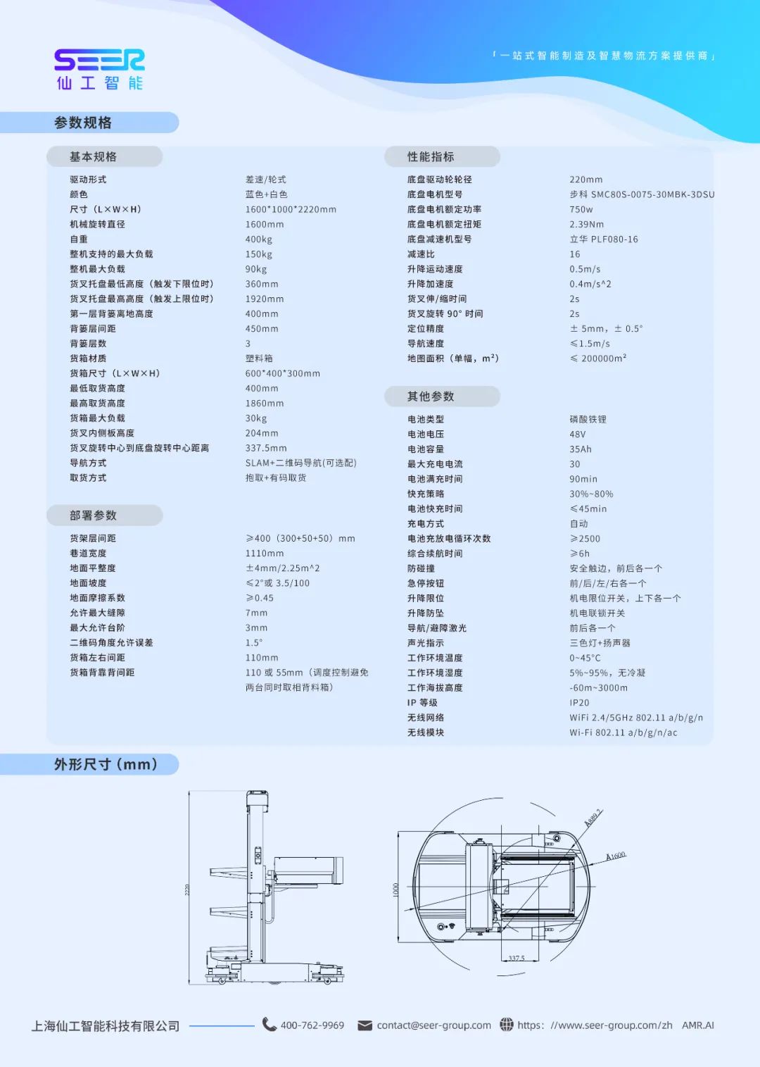 上海仙工智能科技有限公司(简称仙工智能或 SEER)由 RoboCup 世界冠军团队创立,是一家以智能控制及数字化为核心的工业物流解决方案提供商。公司总部位于上海,全国设有 7 个办事处、2 个生产基地,业务遍及全球 20 多个国家和地区。
