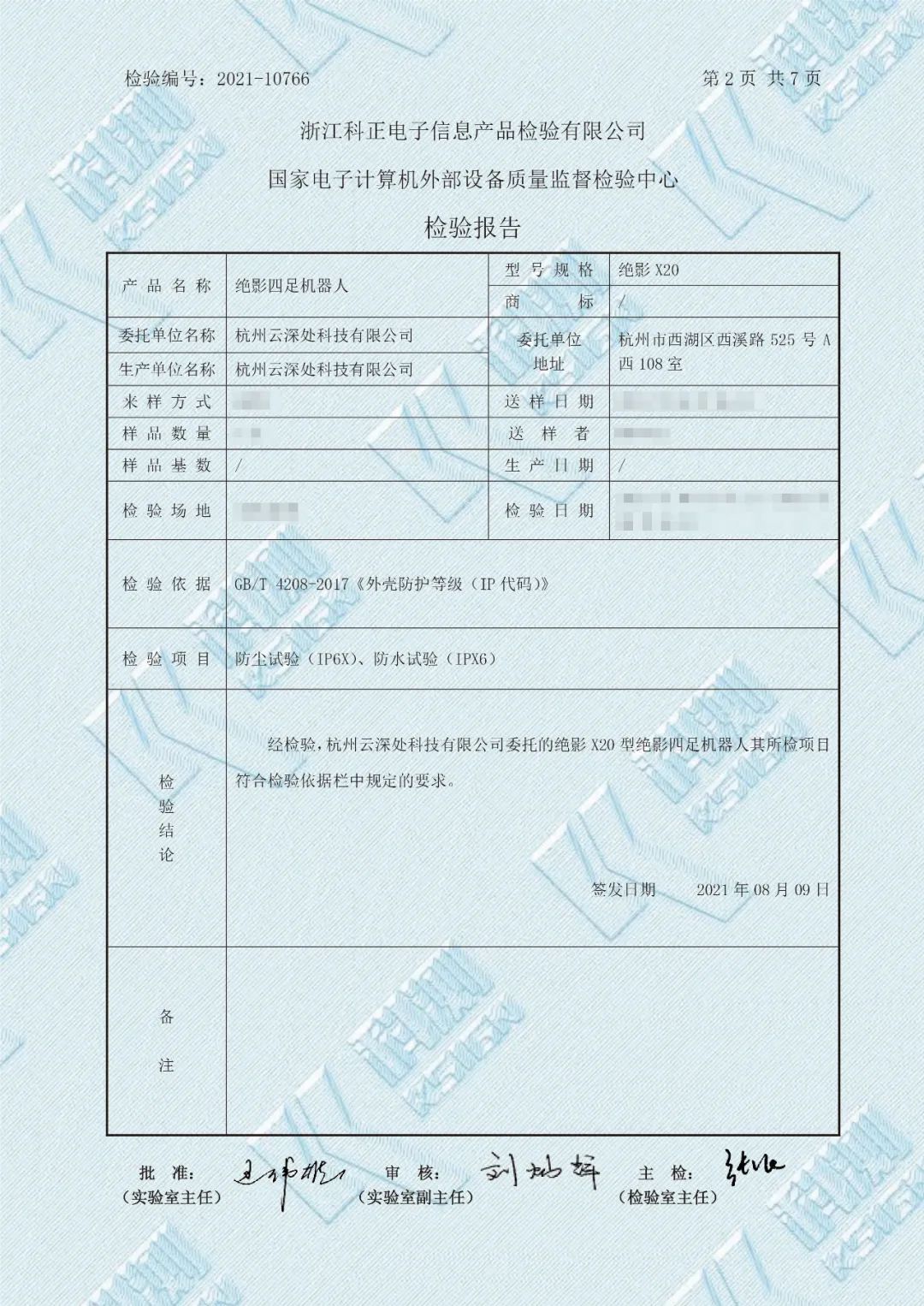 绝影X20已获得国家电子计算机外部设备质量监督检验中心IP66防护等级认证,成为中国第一款获得IP66防护等级认证的四足机器人。