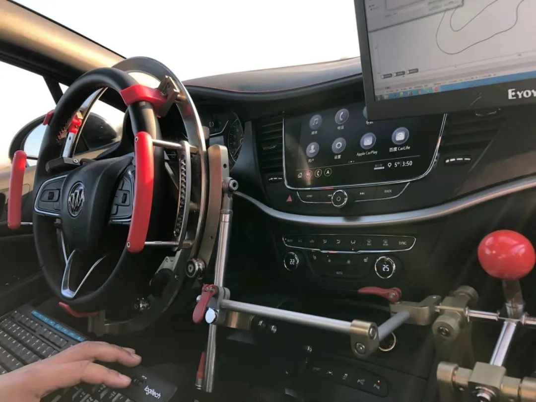 其中环境感知系统就像人的感觉器官,可实时获得道路、车辆位置和障碍物的详细信息;控制系统就像人的大脑,可根据车辆状态和环境感知信息,通过决策将控制指令发送给执行机构,实现车辆的速度、方向控制;执行机构发挥着肢体的作用,灵活操纵车辆离合器踏板、制动踏板、油门踏板、方向盘,以及换挡拨杆和点火开关,像经验丰富的驾驶员一样完成车辆驾驶、操控。