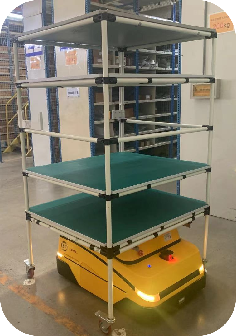 SF-DHL是中国顺丰速运和德国DHL国际物流公司联合成立的供应链品牌,2020年,SF-DHL智能拣选项目中,引进了力生智能多台激光导航AGV。